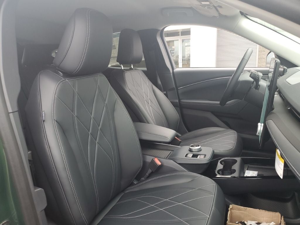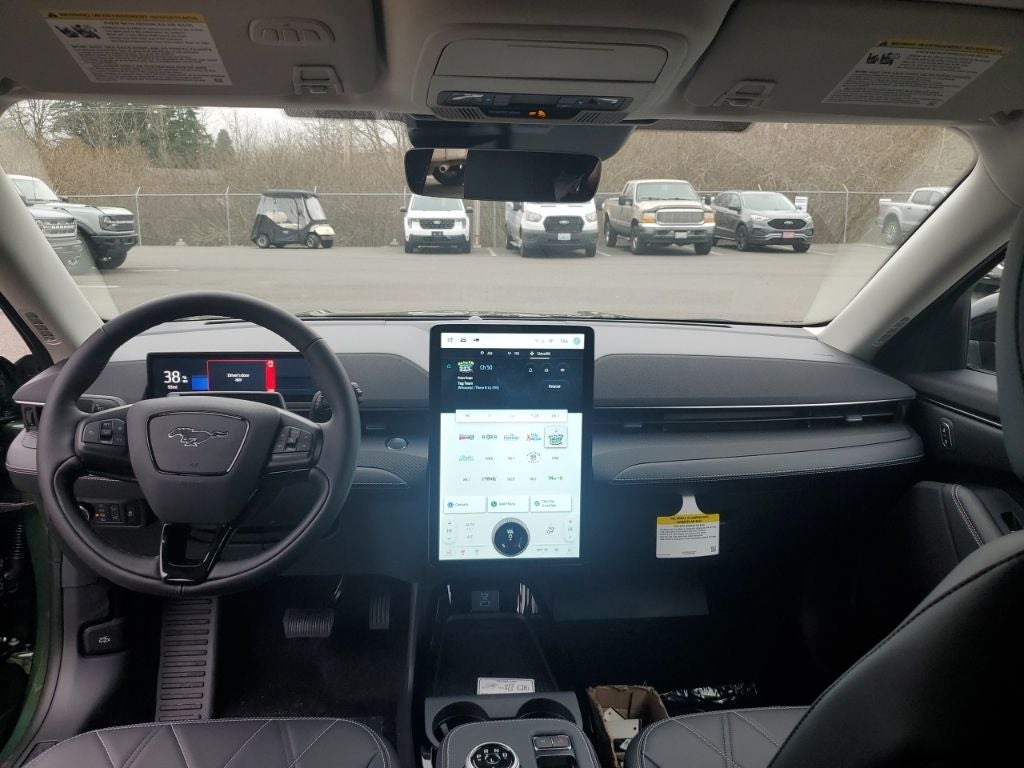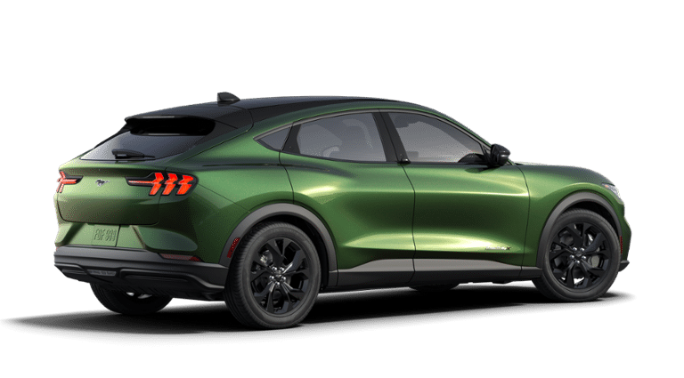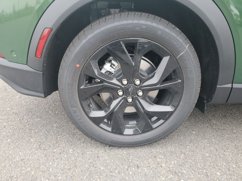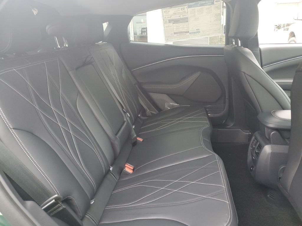 This 2024 Ford Mustang Mach-E comes equipped with, AM/FM radio: SiriusXM with 360L, Auto High-beam Headlights, Brake assist, Equipment Group 100A, Exterior Parking Camera Rear, Heated door mirrors, Heated Front Row Seats, Heated Steering Wheel, Navigation System, Rain sensing wipers, Wheels: 19 Hi-Gloss Black Painted, 4-Wheel Disc Brakes, 6 Speakers, ABS brakes, ActiveX Bucket Seats, Air Conditioning, Alloy wheels, AM/FM Stereo, Auto-dimming Rear-View mirror, Automatic temperature control, Axle Ratio: 9.791, Bumpers: body-color, Compass, Delay-off headlights, Driver door bin, Driver vanity mirror, Dual front impact airbags, Dual front side impact airbags, Electronic Stability Control, Emergency communication system: 911 Assist, Four wheel independent suspension, Front anti-roll bar, Front Bucket Seats, Front Center Armrest, Front dual zone A/C, Front reading lights, Fully automatic headlights, Garage door transmitter, Illuminated entry, Knee airbag, Low tire pressure warning, Occupant sensing airbag, Outside temperature display, Overhead airbag, Overhead console, Panic alarm, Passenger door bin, Passenger vanity mirror, Power door mirrors, Power driver seat, Power steering, Power windows, Radio data system, Rear anti-roll bar, Rear seat center armrest, Rear side impact airbag, Rear window defroster, Rear window wiper, Remote keyless entry, Security system, SiriusXM Radio w/360L, Speed control, Speed-sensing steering, Speed-Sensitive Wipers, Split folding rear seat, Spoiler, Steering wheel mounted audio controls, SYNC 4A w/Enhanced Voice Recognition, Telescoping steering wheel, Tilt steering wheel, Traction control, Trip computer, Turn signal indicator mirrors, Variably intermittent wipers, Wheels: 19 Machined-Face Aluminum, AM/FM radio: SiriusXM with 360L, Auto High-beam Headlights, Brake assist, Equipment Group 100A, Exterior Parking Camera Rear, Heated door mirrors, Heated Front Row Seats, Heated Steering Wheel, Navigation System, Rain sensing wipers, Wheels: 19 Hi-Gloss Black Painted. Green Metallic 2024 Ford Mustang Mach-E Select AWD Single-Speed Automatic Electric Motor
