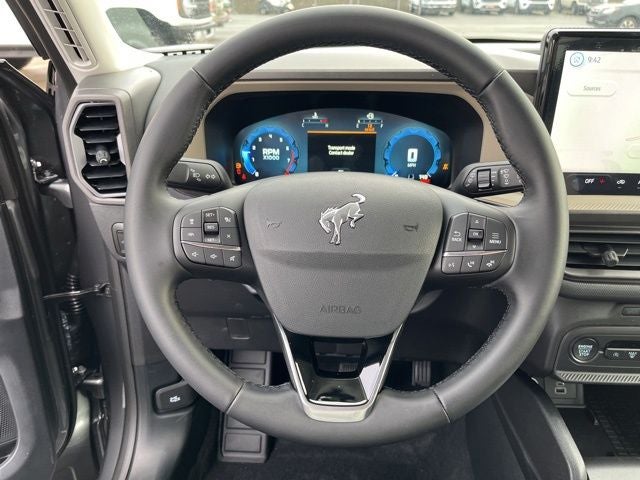 This 2025 Ford Bronco Sport comes equipped with, Convenience Package, Equipment Group 200A, Front Driver/Passenger Seat Back Map Pockets, Heated 8-Way Power Driver's Seat, LED Fog Lamps, Premium Wrapped Steering Wheel, Universal Garage Door Opener (UGDO), 4-Wheel Disc Brakes, 6 Speakers, ABS brakes, Air Conditioning, Alloy wheels, AM/FM radio: SiriusXM, AM/FM Stereo, Auto High-beam Headlights, Automatic temperature control, Brake assist, Cloth w/Easy-to-Clean Front Bucket Seats, Compass, Delay-off headlights, Driver door bin, Driver vanity mirror, Dual front impact airbags, Dual front side impact airbags, Electronic Stability Control, Emergency communication system: SYNC 4 911 Assist, Four wheel independent suspension, Front anti-roll bar, Front Bucket Seats, Front Center Armrest, Front reading lights, Fully automatic headlights, Heated door mirrors, Illuminated entry, Knee airbag, Low tire pressure warning, Occupant sensing airbag, Outside temperature display, Overhead airbag, Overhead console, Panic alarm, Passenger door bin, Passenger vanity mirror, Power door mirrors, Power steering, Power windows, Radio data system, Rear anti-roll bar, Rear Parking Sensors, Rear reading lights, Rear seat center armrest, Rear window defroster, Rear window wiper, Remote keyless entry, Security system, SiriusXM, Speed control, Speed-sensing steering, Speed-Sensitive Wipers, Split folding rear seat, Steering wheel mounted audio controls, SYNC 4 w/Enhanced Voice Recognition, Tachometer, Telescoping steering wheel, Tilt steering wheel, Traction control, Trip computer, Variably intermittent wipers, Wheels: 17 Carbonized Gray-Painted Aluminum, Convenience Package, Equipment Group 200A, Front Driver/Passenger Seat Back Map Pockets, Heated 8-Way Power Driver's Seat, LED Fog Lamps, Premium Wrapped Steering Wheel, Universal Garage Door Opener (UGDO). 2025 Ford Bronco Sport Big Bend 4WD 8-Speed Automatic 1.5L EcoBoost