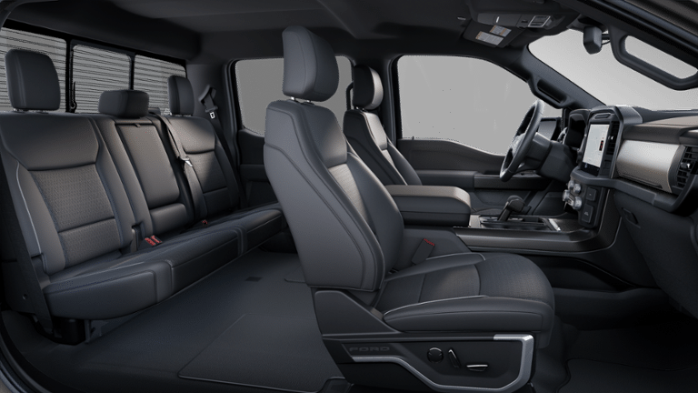 This 2025 Ford F-150 comes equipped with, 4WD, 3.31 Axle Ratio, 4 Pickup Box Tie-Down Plates, ActiveX Trimmed Bucket Seats (B), Auto High-beam Headlights, Bed Utility Package, Black Exterior Badging, Black Grille, Black Taillamp Bezels, Body-Color Front & Rear Bumpers, Body-Color Skull Caps & Door Handles, Brake assist, Dark Interior Appliques, Equipment Group 500A Standard, Gray Box Side Decal, Heated front seats, Heated steering wheel, Lariat Black Appearance Package, LED Box Lighting, Matte Black Tailgate F-150 Decal, Navigation system: Connected Navigation, Power Tailgate, Pro Access Tailgate, Radio: B&O Sound System by Bang & Olufsen, SYNC 4 w/Enhanced Voice Recognition, Wheels: 18 Gloss Black, 4-Wheel Disc Brakes, 8 Speakers, ABS brakes, ActiveX Trimmed Bucket Seats, Adjustable pedals, Air Conditioning, Alloy wheels, AM/FM radio: SiriusXM with 360L, Auto-dimming door mirrors, Auto-dimming Rear-View mirror, Automatic temperature control, Bumpers: chrome, Chrome wheels, Compass, Delay-off headlights, Driver door bin, Driver vanity mirror, Dual front impact airbags, Dual front side impact airbags, Electronic Stability Control, Emergency communication system: SYNC 4 911 Assist, Front anti-roll bar, Front Bucket Seats, Front Center Armrest, Front dual zone A/C, Front fog lights, Front reading lights, Front wheel independent suspension, Fully automatic headlights, Garage door transmitter, Heated door mirrors, Illuminated entry, Low tire pressure warning, Memory seat, Occupant sensing airbag, Outside temperature display, Overhead airbag, Overhead console, Panic alarm, Passenger door bin, Passenger vanity mirror, Pedal memory, Power door mirrors, Power driver seat, Power passenger seat, Power steering, Power windows, Radio data system, Rain sensing wipers, Rear reading lights, Rear seat center armrest, Rear step bumper, Rear window defroster, Remote keyless entry, Security system, Speed control, Split folding rear seat, Steering wheel mounted audio controls, Tachometer, Telescoping steering wheel, Tilt steering wheel, Traction control, Trip computer, Turn signal indicator mirrors, Variably intermittent wipers, Ventilated front seats, Voltmeter, BLUECRUISE EQUIP: 90DAY TRIAL, 4WD, 3.31 Axle Ratio, 4 Pickup Box Tie-Down Plates, ActiveX Trimmed Bucket Seats (B), Auto High-beam Headlights, Bed Utility Package, Black Exterior Badging, Black Grille, Black Taillamp Bezels, Body-Color Front & Rear Bumpers, Body-Color Skull Caps & Door Handles, Brake assist, Dark Interior Appliques, Equipment Group 500A Standard, Gray Box Side Decal, Heated front seats, Heated steering wheel, Lariat Black Appearance Package, LED Box Lighting, Matte Black Tailgate F-150 Decal, Navigation system: Connected Navigation, Power Tailgate, Pro Access Tailgate, Radio: B&O Sound System by Bang & Olufsen, SYNC 4 w/Enhanced Voice Recognition, Wheels: 18 Gloss Black. Carbonized Gray Metallic 2025 Ford F-150 Lariat 4WD 10-Speed Automatic 3.5L V6 EcoBoost