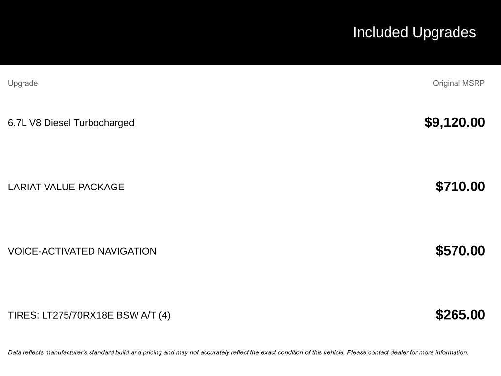 - Tires: LT275/65Rx18E BSW A/S