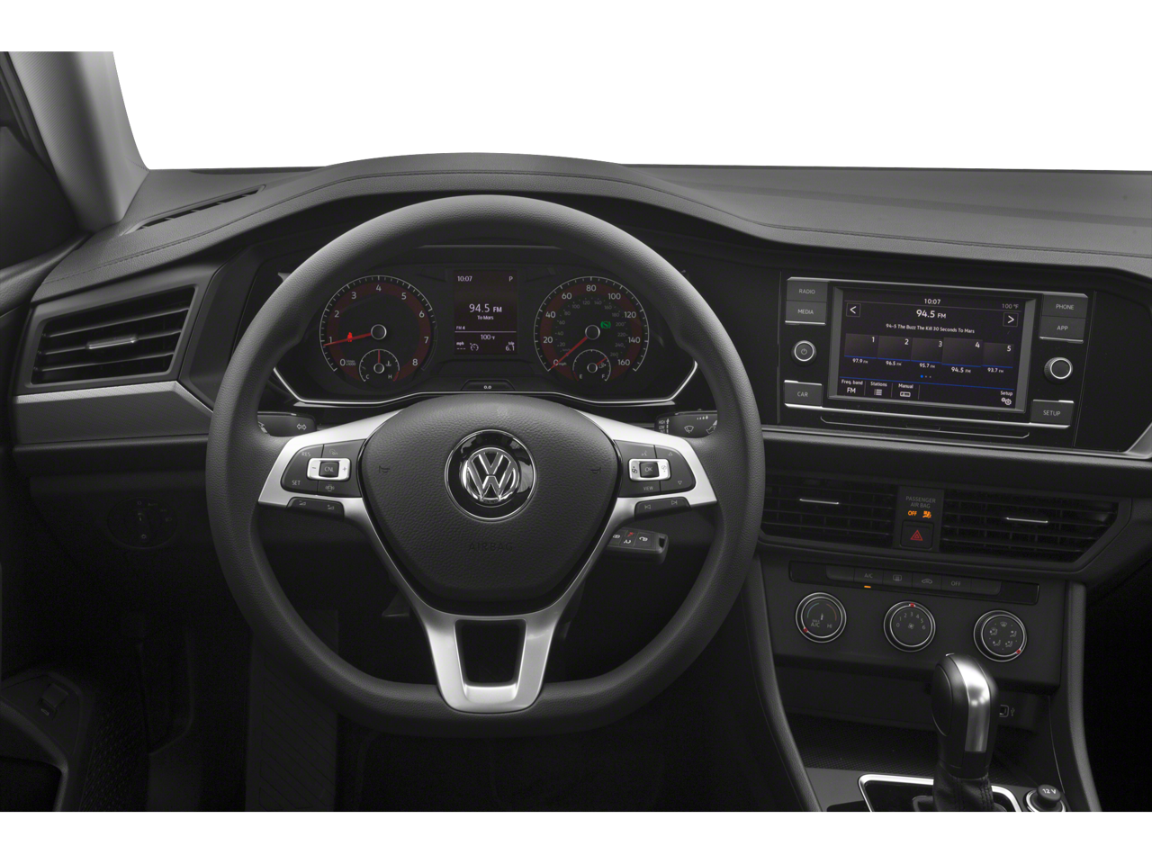 Step inside the Jetta SEL and you'll be greeted by a wealth of premium amenities. Sink into the heated front comfort seats, wrapped in perforated V-Tex leatherette, and enjoy the convenience of dual-zone automatic climate control, a power moonroof, and a state-of-the-art infotainment system with an 8-inch touchscreen display, SiriusXM radio, and a 9-speaker audio setup.