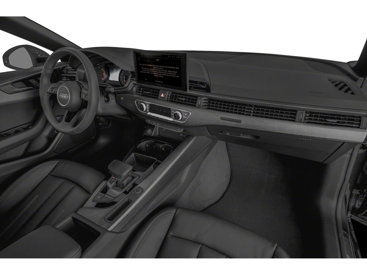 Stepping inside, you'll be greeted by a luxurious and well-appointed interior, featuring premium leather seating, a heated steering wheel, and a host of advanced safety and convenience features. The Audi Active Lane Assist and Audi Side Assist with Pre Sense Rear provide added peace of mind, while the Top View Camera System and Parking System Plus make navigating tight spaces a breeze.