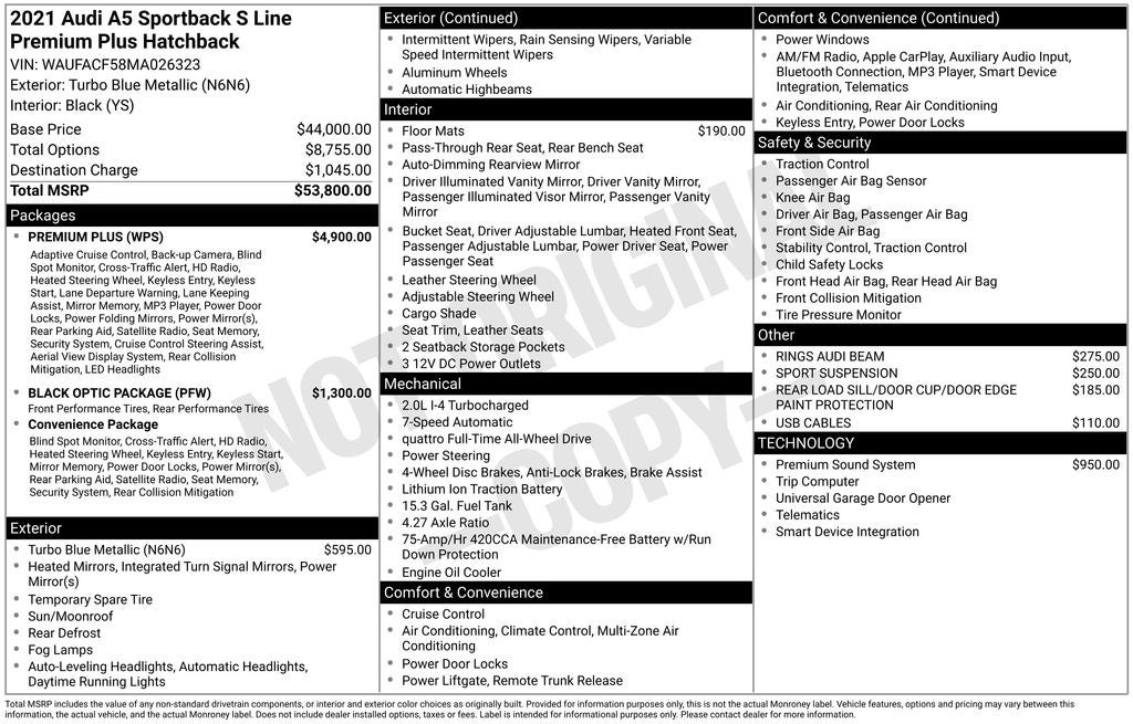 - Vehicle Name: Audi A5 Sportback