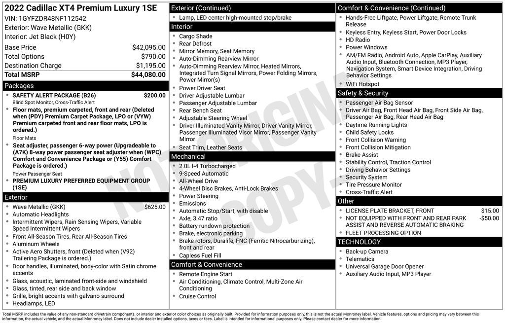 - Vehicle Name: Cadillac XT4