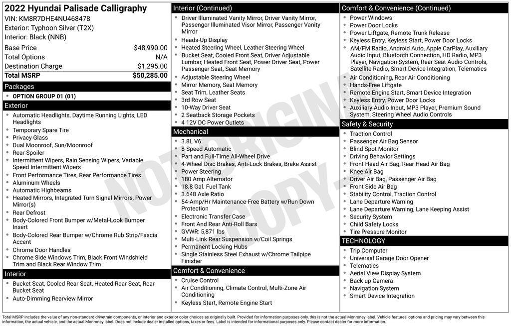 This 2022 Hyundai Palisade Calligraphy is a true testament to Hyundai's commitment to innovation and craftsmanship. With its stunning design, impressive performance, and unparalleled features, it's the perfect SUV to elevate your driving experience. We invite you to schedule a test drive and discover the exceptional capabilities of this remarkable vehicle for yourself. Let us help you find your perfect match and drive away in the Palisade Calligraphy of your dreams.