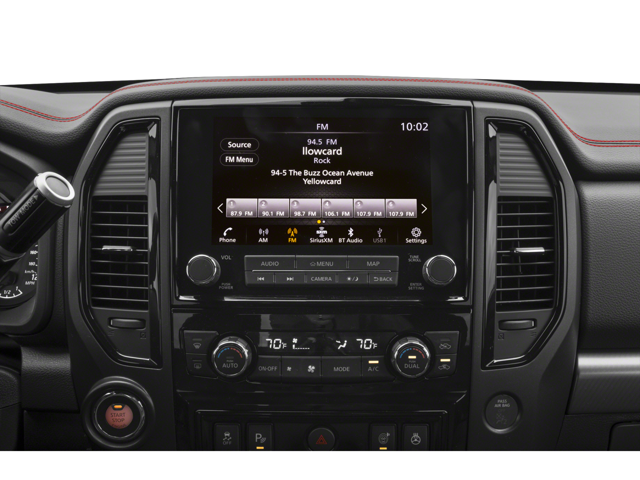 This 2024 Nissan Titan comes equipped with, 4WD, 3.692 Axle Ratio, 4-Way Power Assist Seat, 4-Wheel Disc Brakes, 6 Speakers, ABS brakes, Air Conditioning, Alloy wheels, AM/FM radio: SiriusXM, Apple CarPlay/Android Auto, Auto High-beam Headlights, Auto-dimming Rear-View mirror, Auto-leveling suspension, Automatic temperature control, Bed Assist Grip, Black Tow Mirror Kit (T93), Blind Spot Warning, Brake assist, Cloth Seat Trim w/Vinyl Bolsters, Compass, Delay-off headlights, Driver door bin, Driver Power Folding Auto Dimming Outside Mirrors, Driver vanity mirror, Dual front impact airbags, Dual front side impact airbags, Electronic Stability Control, Emergency communication system: NissanConnect Services, Front anti-roll bar, Front Bucket Seats, Front Captain's Seats, Front Center Armrest, Front dual zone A/C, Front fog lights, Front reading lights, Front wheel independent suspension, Fully automatic headlights, Garage door transmitter: HomeLink, Heated door mirrors, Heated Driver & Passenger Seat, Heated Rear Seats, Heated Tilt/Telescoping Steering Wheel, Illuminated entry, Intelligent Around View Monitor (I-AVM), Knee airbag, Leather Seat Trim, Leather steering wheel, Low tire pressure warning, Memory Driver Seat w/Auto Entry/Exit Feature, Navigation system: NissanConnect with Navigation and Services, Nissan Tailgate Audio by Kicker, Occupant sensing airbag, Outside temperature display, Overhead airbag, Overhead console, Panic alarm, Passenger door bin, Passenger vanity mirror, Power door mirrors, Power driver seat, Power steering, Power windows, PRO-4X Badged Floor Mats, PRO-4X Convenience Package, PRO-4X Illuminated Kick Plate, PRO-4X Mud Flaps, PRO-4X Rugged Step Boards, PRO-4X Utility Package, Proximity Activation, Radio data system, Radio: NissanConnect w/Navigation, Rain sensing wipers, Rear anti-roll bar, Rear Bumper Step w/Electronic Tailgate Lock, Rear Parking Sensors, Rear reading lights, Rear seat center armrest, Rear Seat Entertainment (H93), Rear step bumper, Rear Underseat Storage, Rear window defroster, Remote Engine Start on Key Fob, Remote keyless entry, Security system, Side Turn Signal Lamps on Mirror Housing, Speed control, Speed-sensing steering, Speed-Sensitive Wipers, Split folding rear seat, Steering wheel mounted audio controls, Tachometer, Telescoping steering wheel, Tilt steering wheel, Traction control, Trip computer, USB Charging Cables, Variably intermittent wipers, Voltmeter, Wheels: 18 x 8 Painted Dark Finish Alloy, 4WD. Clean CARFAX. Glacier White 2024 Nissan Titan PRO-4X 4WD 9-Speed Automatic 5.6L V8 DOHC 32V LEV3-ULEV70 400hp