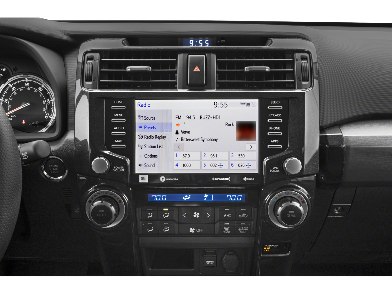 - Radio: Premium Audio w/JBL -inc: 8.0" touch-screen display, HD radio, 15 speakers including subwoofer and amplifier, Android Auto, Apple CarPlay and Amazon Alexa compatible, USB media port, 4 USB charge ports, Dynamic Navigation w/up to a 3-year trial, Dynamic POI Search, Dynamic Voice Recognition, hands-free phone capability and music streaming via Bluetooth® wireless technology, SiriusXM w/3-month Platinum Plan trial and Connected Services (Safety Connect w/1-year trial, Service Connect w/10-year trial, Remote Connect w/1-year trial, Wi-Fi Connect w/up to 2 GB within 3-month trial and Destination Assist w/1-year trial), See toyota.com/audio-multimedia for details
