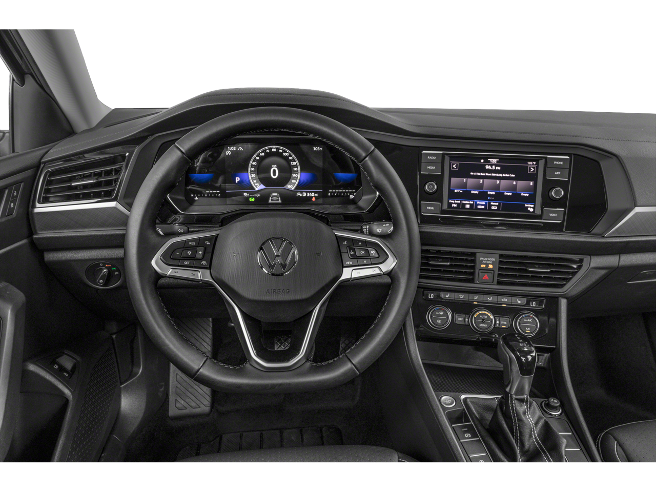 The interior of this Jetta is both stylish and practical. Sink into the heated, leather-trimmed seats and enjoy the convenience of dual-zone automatic climate control. The intuitive infotainment system, complete with a 6.5-inch touchscreen, keeps you connected and entertained on every journey.